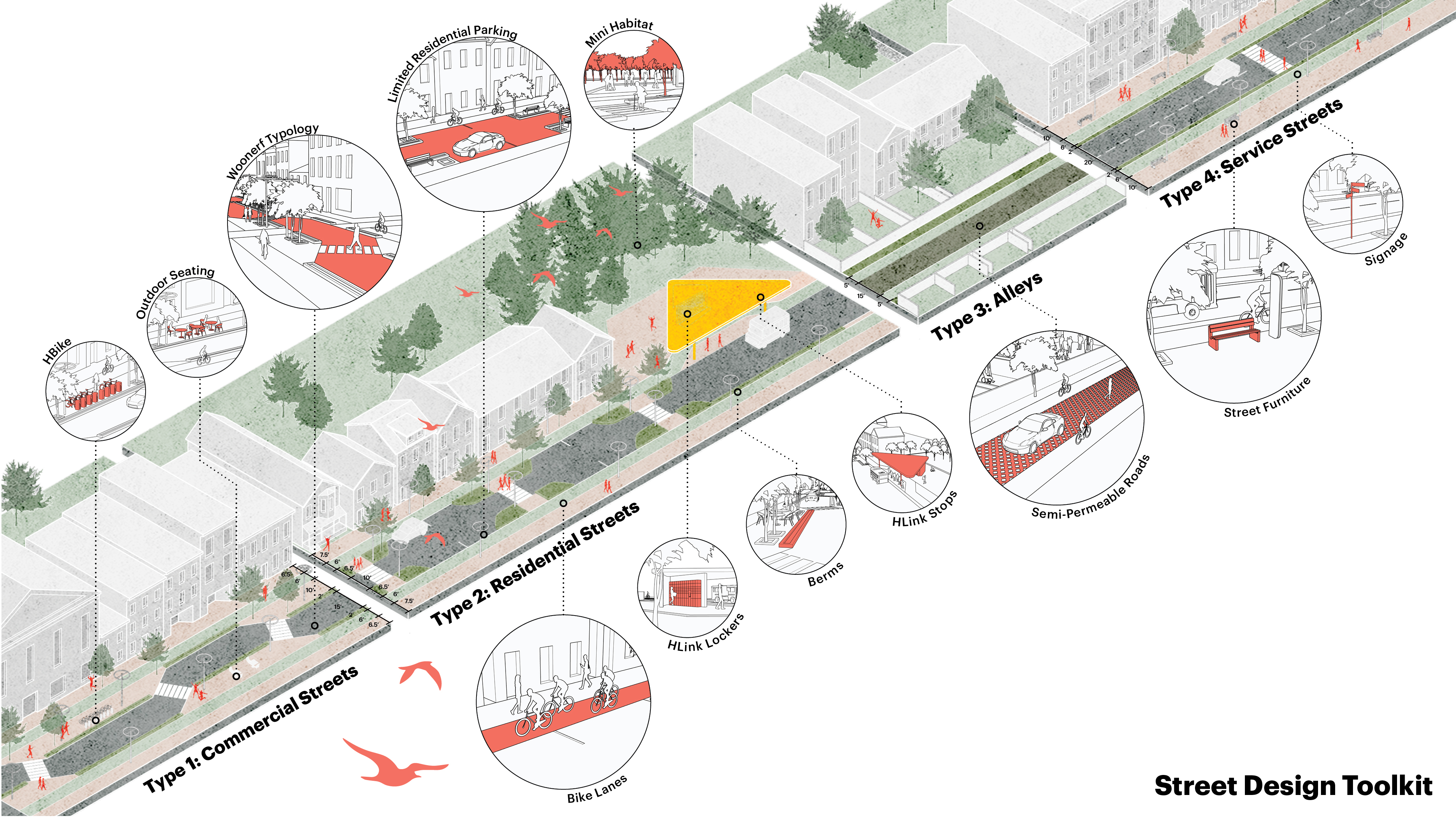 The disproportionate amount of parking spaces in the city presents itself as another opportunity to improve the transportation system in Hudson. HudsonConnect introduces its main component in these spaces. HLink is a network that connects people and goods both in and out of the city.