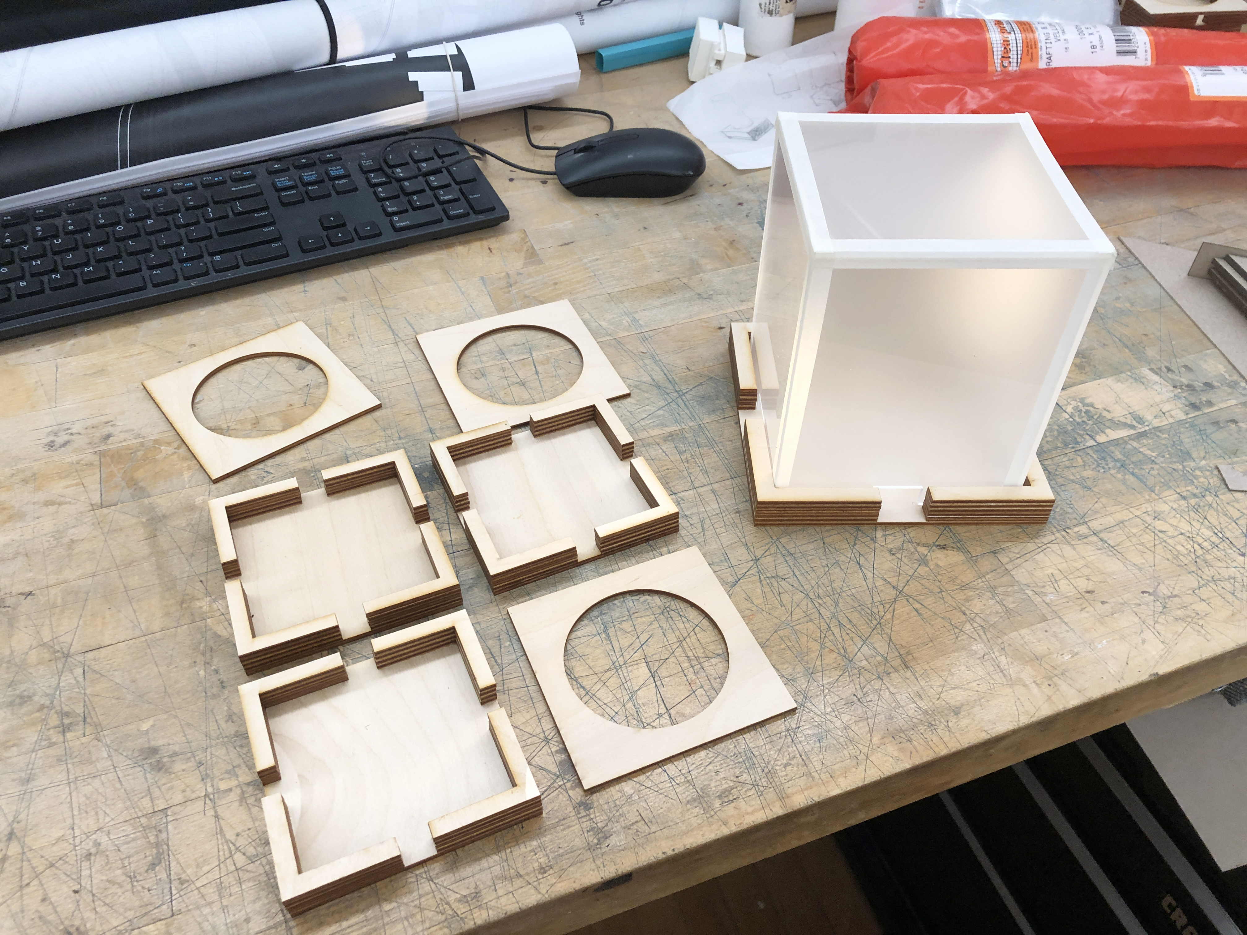 The piece aims to stimulate the design process: 1) the designer enters a new problem space and begins to search for answers blindly. 2) Through intuition, the designer generates possible solutions that may or may not be fruitful to the design. 3) Further down the process the goal becomes clearer and refining the design becomes easier, reflected by the increase in light to identify the correct wires to pair together.